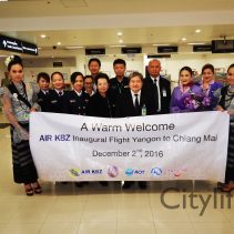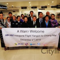 Director of Tourism Authority of Thailand (Chiang Mai) Wisut Buachum, along with representatives from AOT and Immigration officials welcomed the AIR KBZ Inugural Flight Yangon to Chiang Mai The flight will run three days a week. Wednesday and Friday depart Yangon 1315 arrive Chiang Mai 1505 / depart Chiang Mai 1610 arrive Yangon 1700 Sunday depart Yangon 0815 arrive Chiang Mai 1005 / depart Chiang Mai 1100 arrive Yangon 1150 All times local