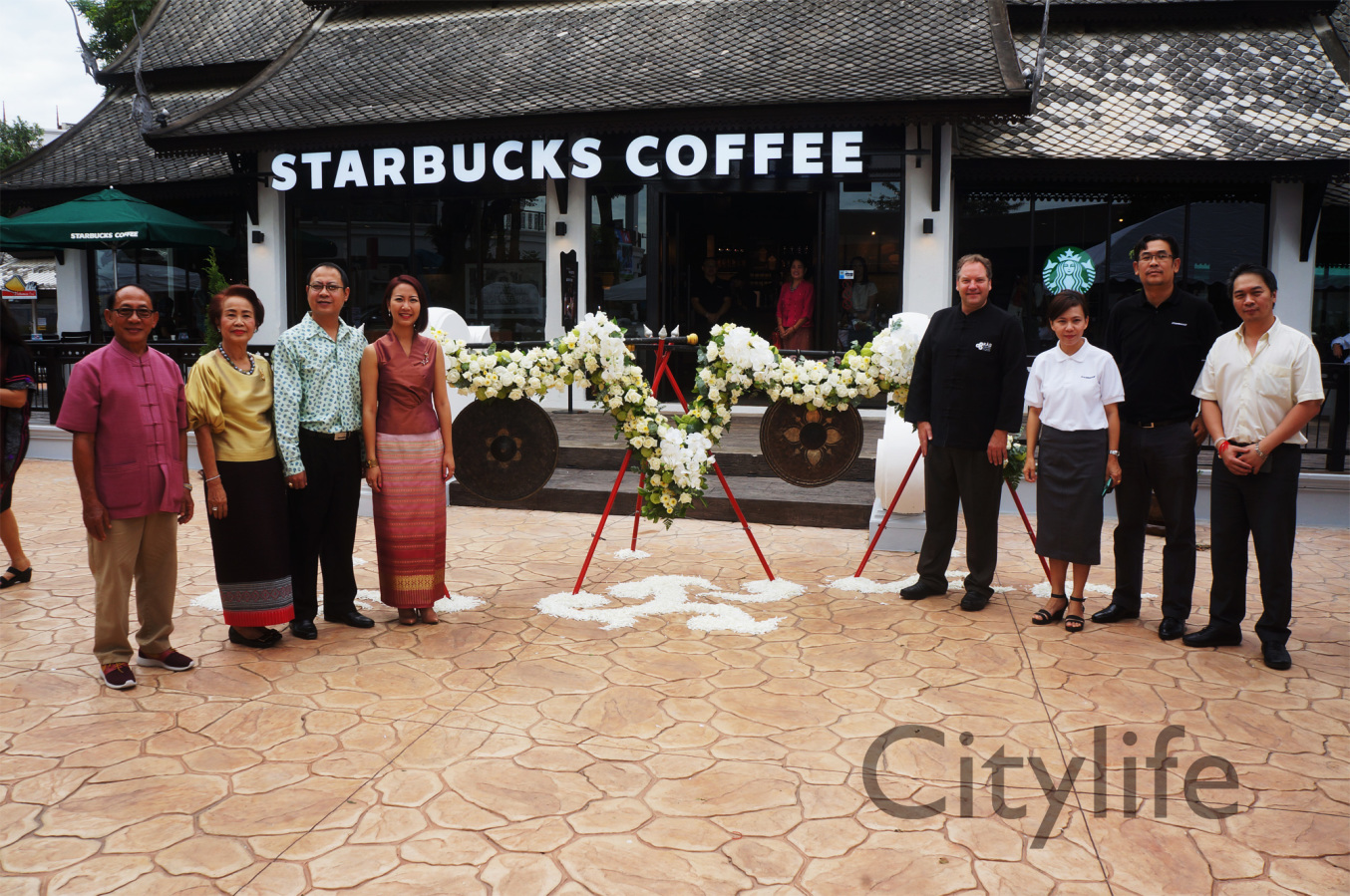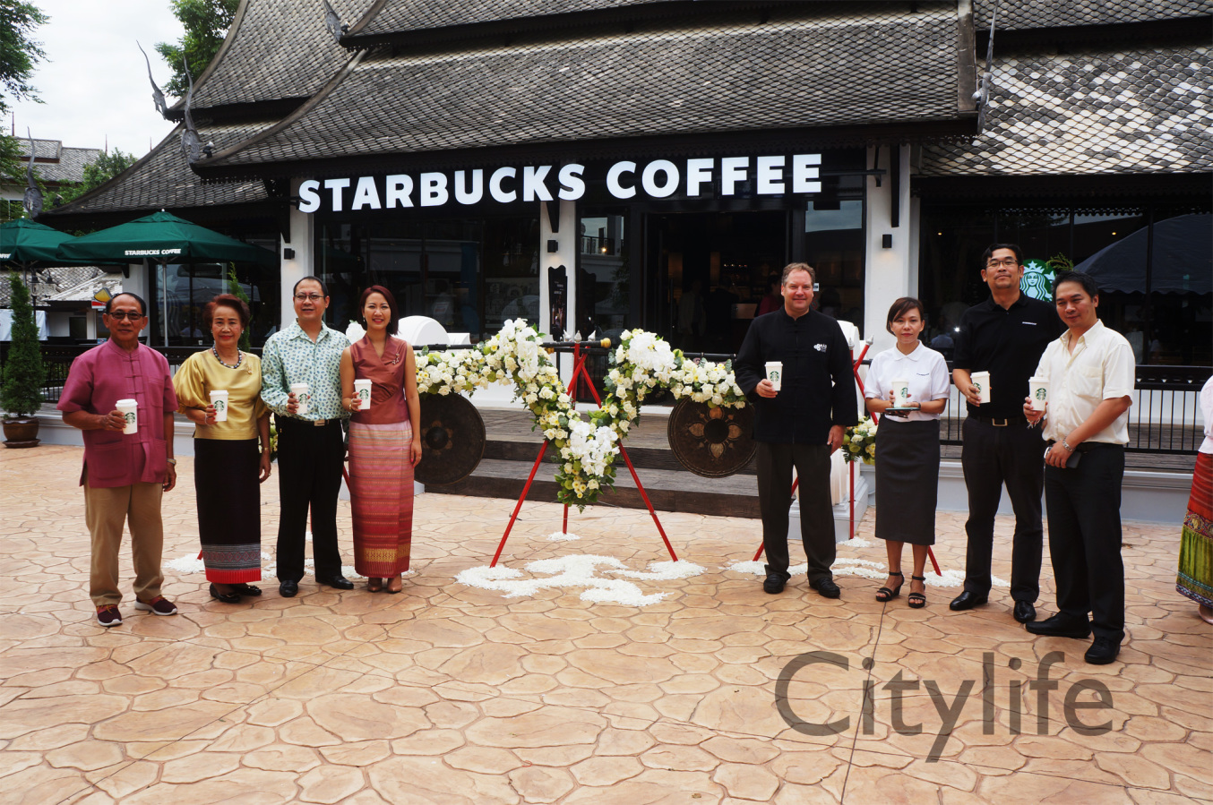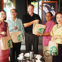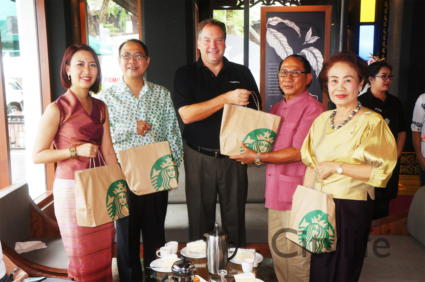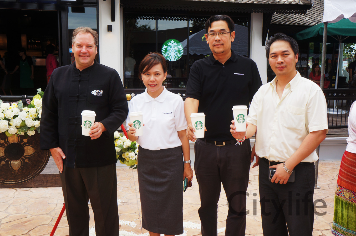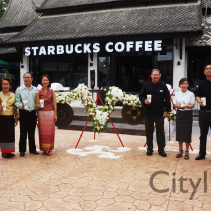 Grand Opening of Starbucks at Kad Farang Village, Chiang Mai – Hang Dong Road. Guests of honour included Murray Darling, Managing Director of Starbucks Coffee, Thanasak Kulrattanarak, Development Director of Starbucks Coffee, Sakchai Kunanuwachaidech, Sheriff of Hangdong district, and Renuta Mekurai, Vice President of Kad Farang Village