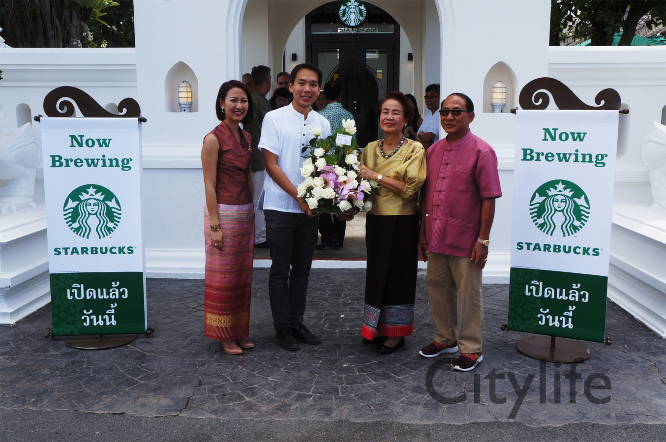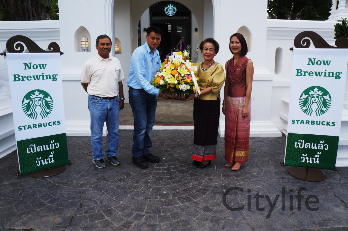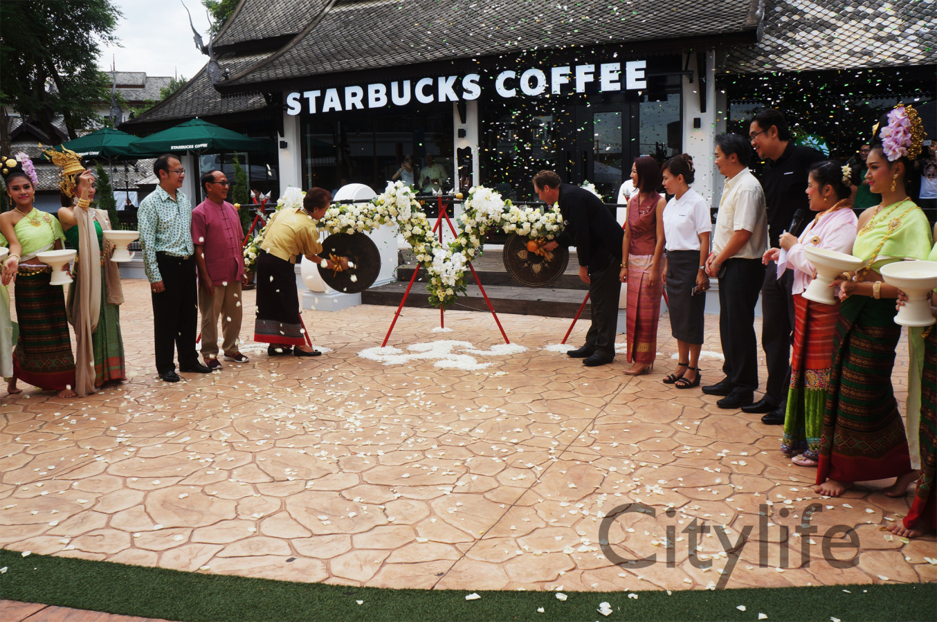 Grand Opening of Starbucks at Kad Farang Village, Chiang Mai – Hang Dong Road. Guests of honour included Murray Darling, Managing Director of Starbucks Coffee, Thanasak Kulrattanarak, Development Director of Starbucks Coffee, Sakchai Kunanuwachaidech, Sheriff of Hangdong district, and Renuta Mekurai, Vice President of Kad Farang Village