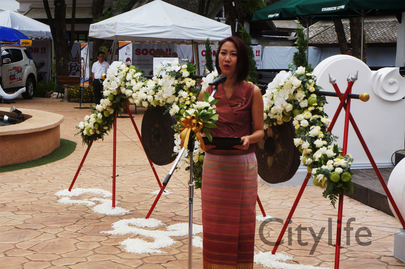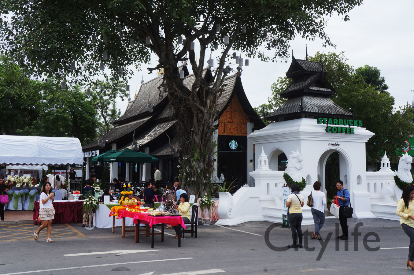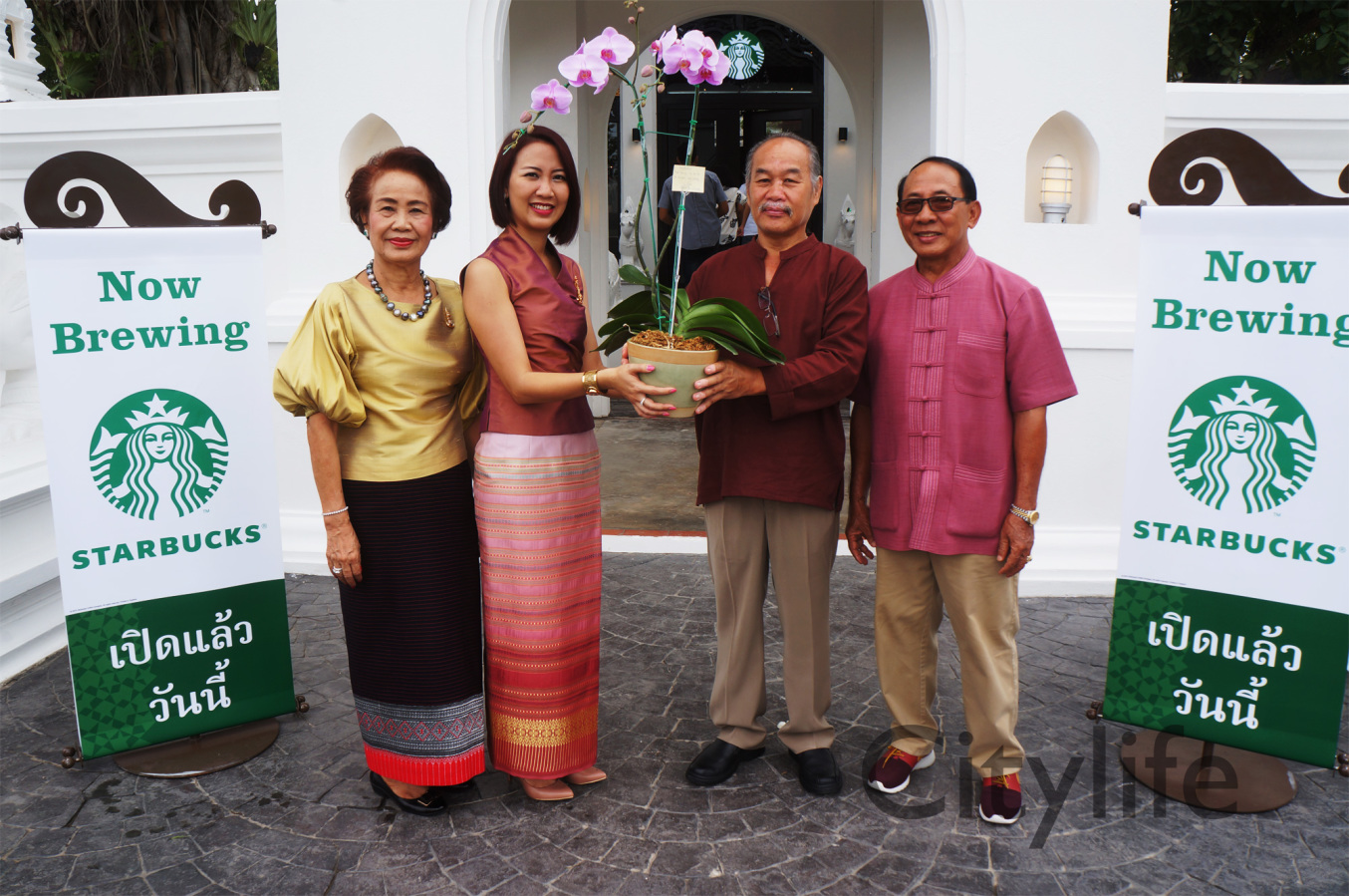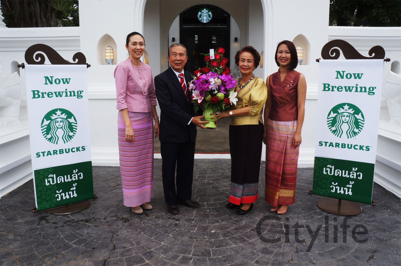 Grand Opening of Starbucks at Kad Farang Village, Chiang Mai – Hang Dong Road. Guests of honour included Murray Darling, Managing Director of Starbucks Coffee, Thanasak Kulrattanarak, Development Director of Starbucks Coffee, Sakchai Kunanuwachaidech, Sheriff of Hangdong district, and Renuta Mekurai, Vice President of Kad Farang Village
