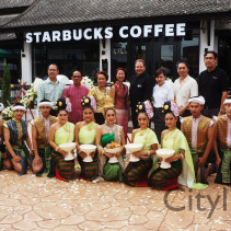Grand Opening of Starbucks at Kad Farang Village, Chiang Mai – Hang Dong Road. Guests of honour included Murray Darling, Managing Director of Starbucks Coffee, Thanasak Kulrattanarak, Development Director of Starbucks Coffee, Sakchai Kunanuwachaidech, Sheriff of Hangdong district, and Renuta Mekurai, Vice President of Kad Farang Village