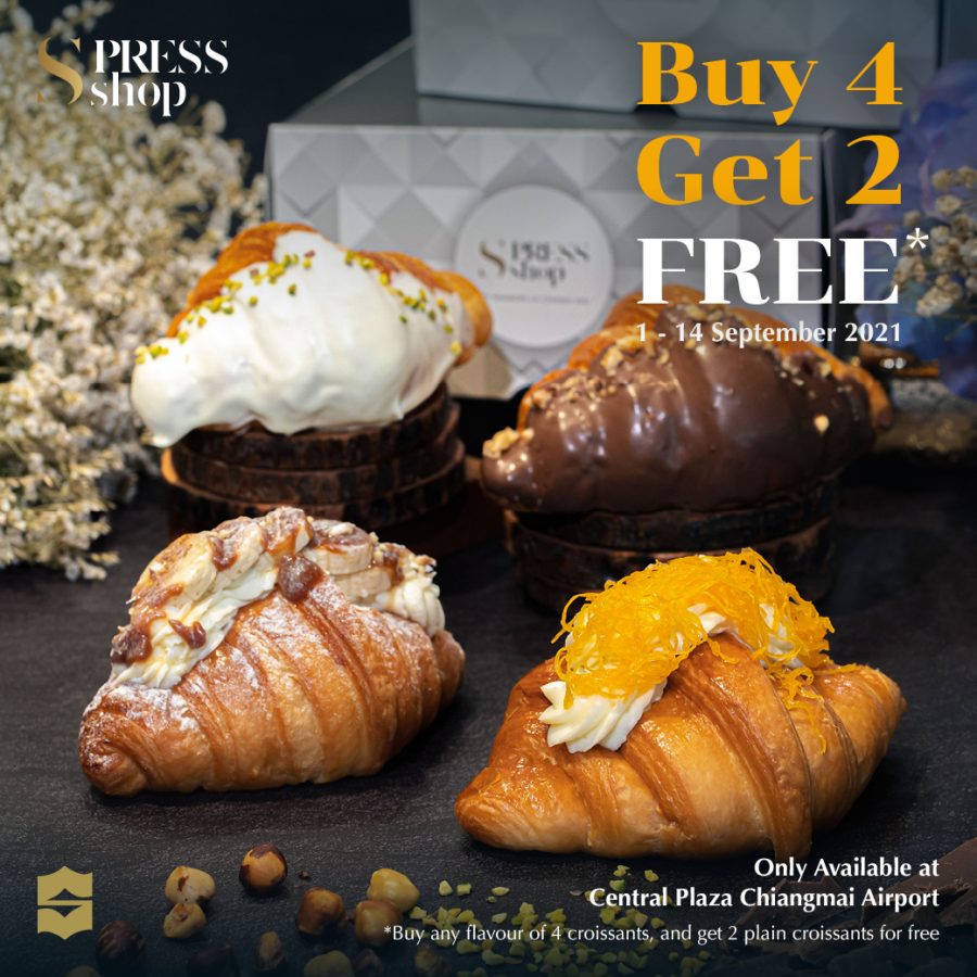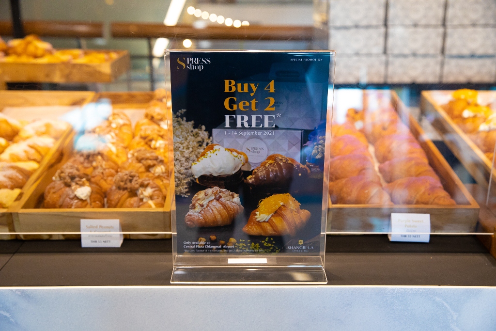S-Press Shop by Shangri-La Hotel Chiang Mai is now open on 1st floor at CentralPlaza Chiang Mai Airport. The shop offers a wide selection of freshly baked croissants such as butter, rainbow, nutella, almond, lemon meringue, vanilla and fresh strawberry, matcha green tea, caramel and baked beans, salted egg lava, ham cheese , spinach and cheese, Italian sausage.