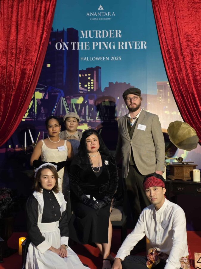 Murder on the Ping River – 1921 Wine Club, Anantara Resort. This Halloween, the 1921 Wine Club transforms into a scene of vintage intrigue — where shadows whisper and suspects gather. Every glass of wine conceals a truth, every guest hides a lie. As night falls on the Ping, murder drifts downstream in the Brit Bar at 1921 House.