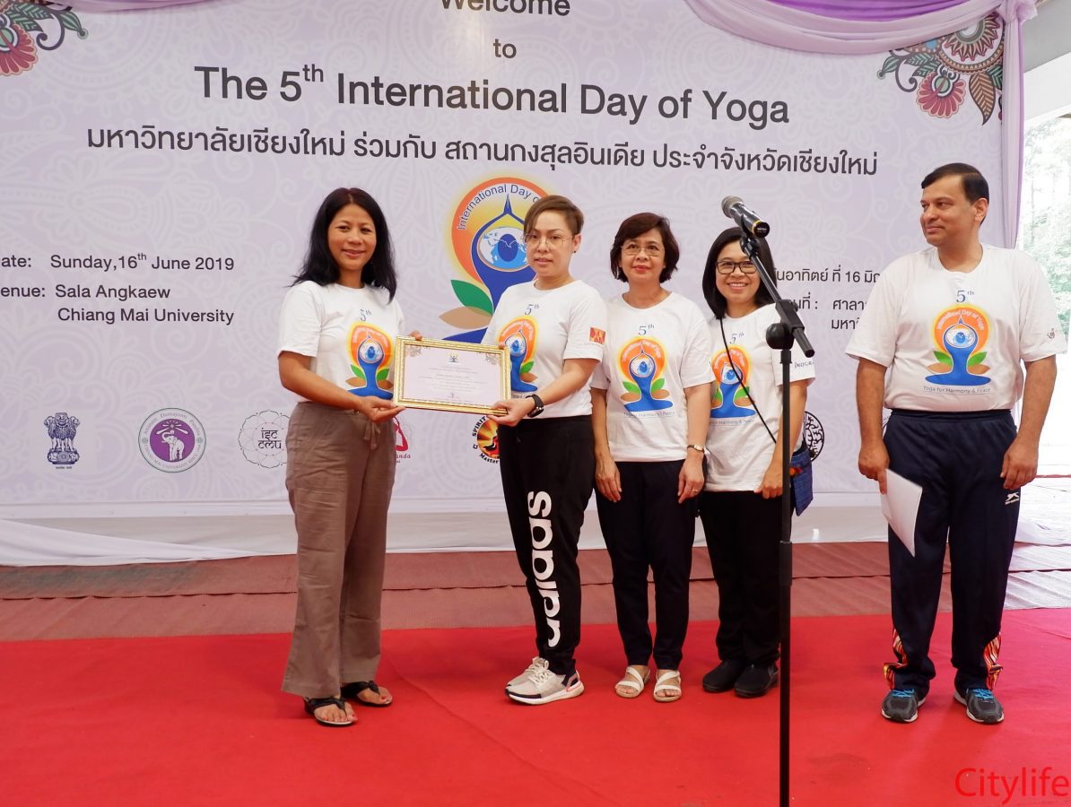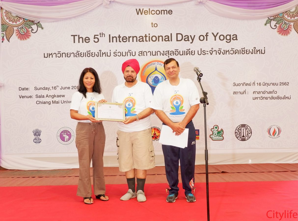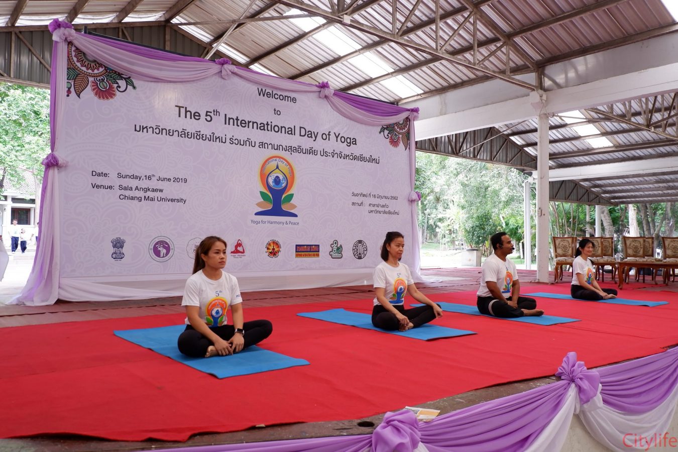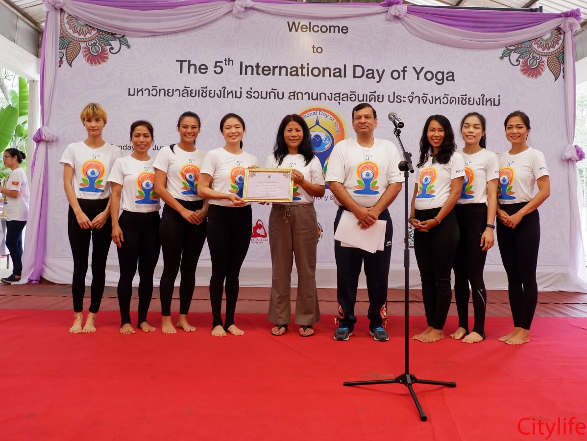 The Consulate of India in association with Chiang Mai University organized the 5th International Day of Yoga Sala Angkaew, Chiang Mai University. Spirit Yoga Studio and Yoga Ananda Chiang Mai provided Yoga instruction to participants.