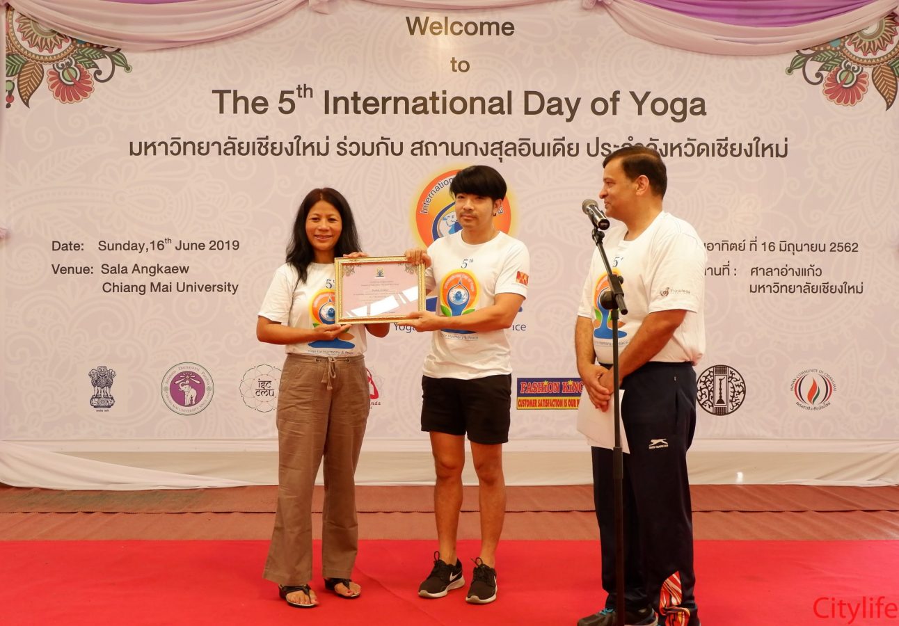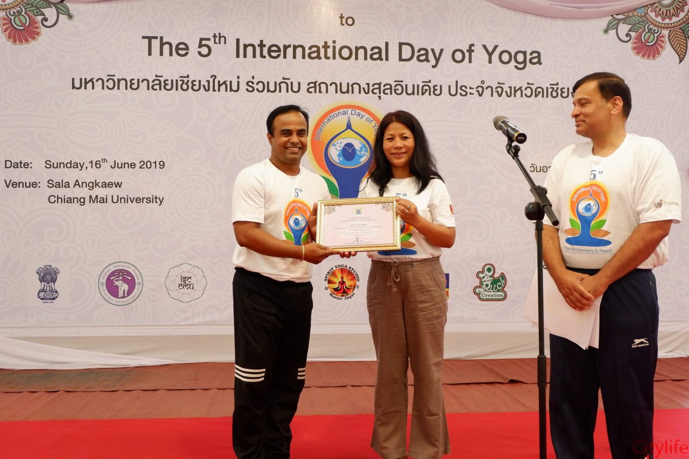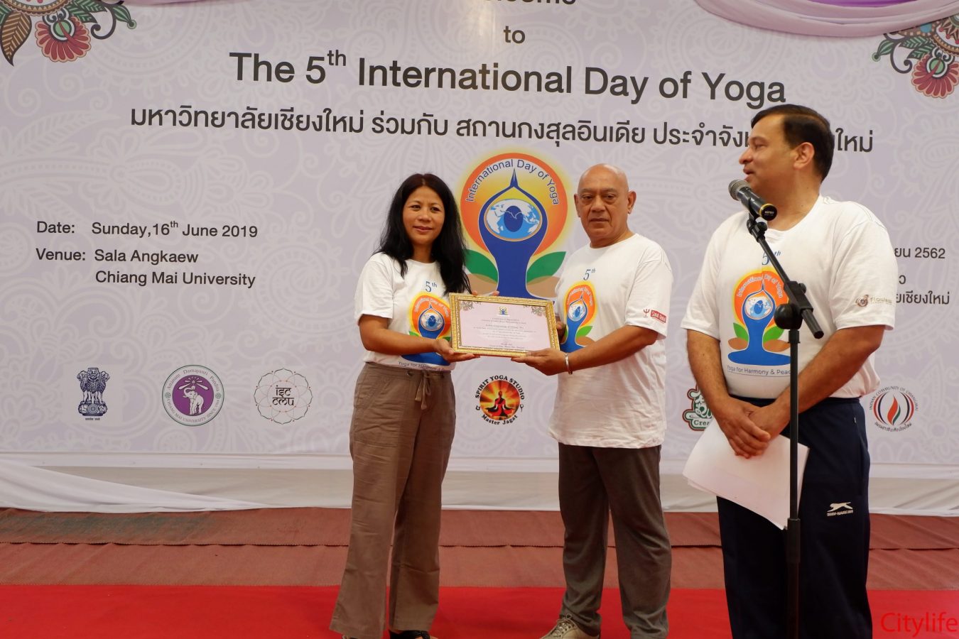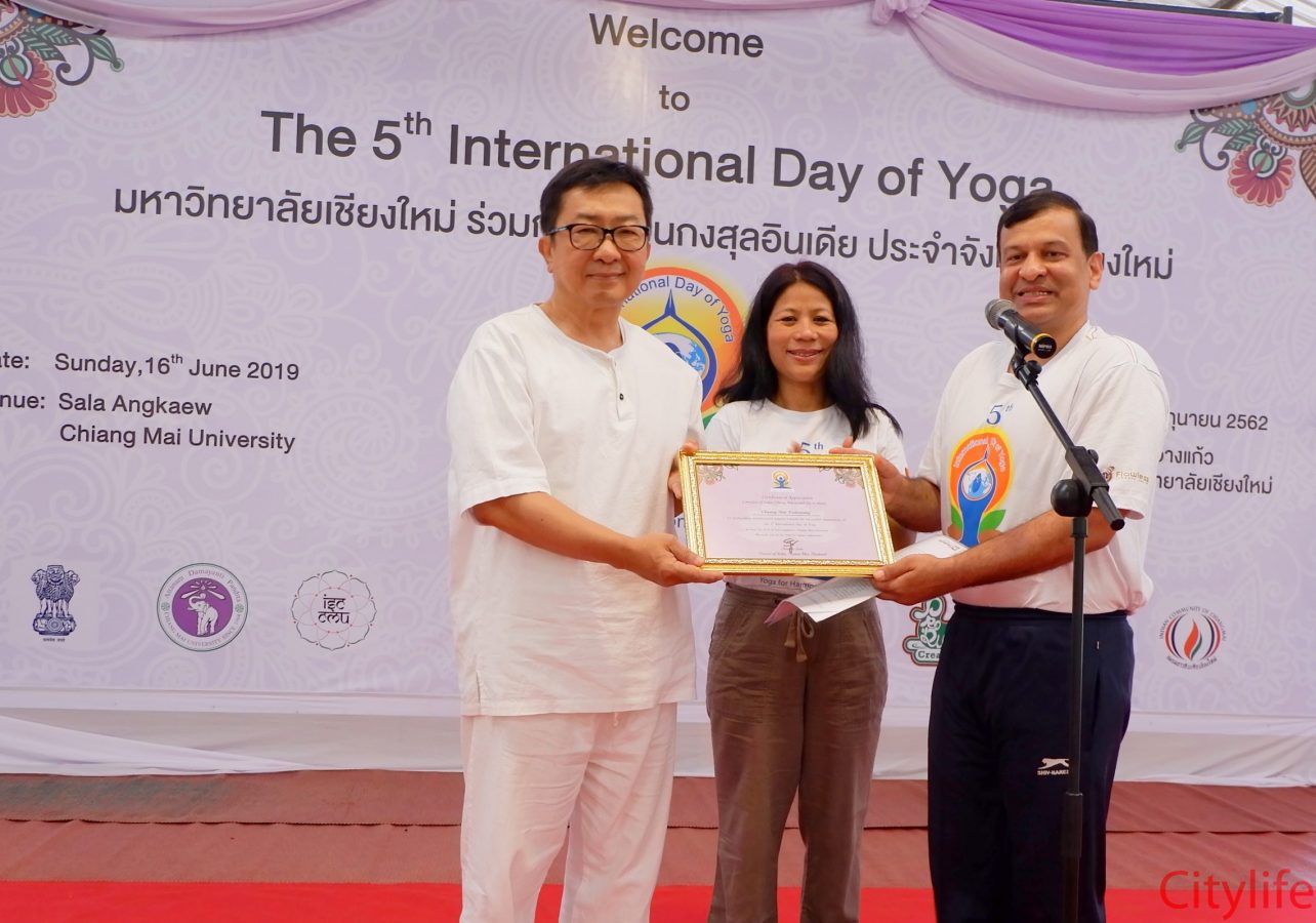 The Consulate of India in association with Chiang Mai University organized the 5th International Day of Yoga Sala Angkaew, Chiang Mai University. Spirit Yoga Studio and Yoga Ananda Chiang Mai provided Yoga instruction to participants.