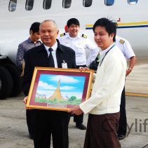 Director of Tourism Authority of Thailand (Chiang Mai) Wisut Buachum, along with representatives from AOT and Immigration officials welcomed the AIR KBZ Inugural Flight Yangon to Chiang Mai The flight will run three days a week. Wednesday and Friday depart Yangon 1315 arrive Chiang Mai 1505 / depart Chiang Mai 1610 arrive Yangon 1700 Sunday depart Yangon 0815 arrive Chiang Mai 1005 / depart Chiang Mai 1100 arrive Yangon 1150 All times local