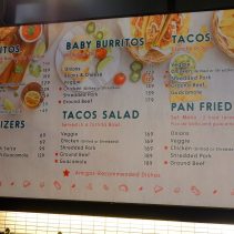 Examples from the menu include: Quesadillas Veggie 129 THB (s) 179 THB (L) /Quesadillas Ground Beef 189 THB (s) 289 THB (L) / Nachos: Classic 199 THB, Shredded Pork 279 THB Ground Beef 299 THB / Wraps: Veggie bell peppers & onion 99 THB, Chicken grilled or shredded 129 THB, Shredded Pork 139 THB – much more besides….