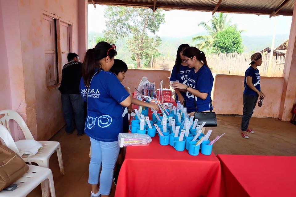 The management and staff of the Anantara Chiang Mai Resort carried out community work at Baan Nongtao, Chiang Dao to celebrate Minor Group Founders Day. They took a dentist to check the children’s teeth, also refurbished classrooms and the library plus worked in the vegetable garden at Baan Nongtao
