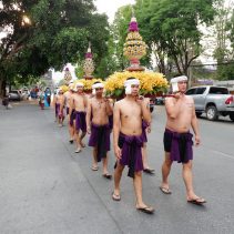 The Governor of Chiang Mai Supachai lamsuwan and Chao Wongsak Na Chiang Mai led local residents to paying their respects to the Lanna Royal Family at the Suan Dok Temple, which is the resting place of the former Kings of Lanna. The event included a procession from Chiang Mai University Art Center to Suan Dok Temple.
