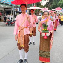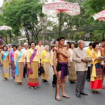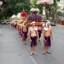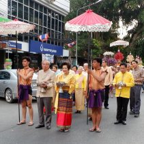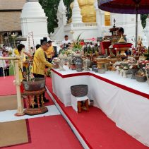 The Governor of Chiang Mai Supachai lamsuwan and Chao Wongsak Na Chiang Mai led local residents to paying their respects to the Lanna Royal Family at the Suan Dok Temple, which is the resting place of the former Kings of Lanna. The event included a procession from Chiang Mai University Art Center to Suan Dok Temple.