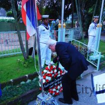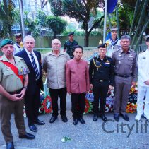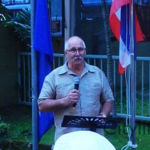 Pastor Jonathan Vickers led the service of commerations for ANZAC Day at the House of Praise International Church. Ron Elliot. This year’s event was attended by over 100 people, the largest crowd in recent years. Australian Honorary Consul in Chiang Mai welcomed the Chiang Mai Vice Governor Prachuap Kanthiya, along representatives from the Royal Thai Army and Royal Thai Police force. Australia was well represented by the Australian Defense force as well as personnel from HMAS ANZAC.