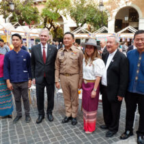 Austin-Chiang Mai Sister Cities Initiative Launch at One Nimman with U.S. Ambassador to Thailand Robert F. Godec, Consul General for northern Thailand Lisa Buzenas, Chiang Mai Provincial Governor Nirat Phongsittithaworn, Chiang Mai Provincial Administration Organization President Pichai Lertpong-adisorn, and Chiang Mai Municipality Mayor Assanee Buranupakorn. Plus the newly-established Chiang Mai Sister Cities Board of Directors as they showcase famous Austin and Chiang Mai food, music, and dance. The Chiang Mai Sister Cities board also arranged for booths to highlight different aspects of the new relationship. The event featured traditional Thai dancing and Texas Line dancing.