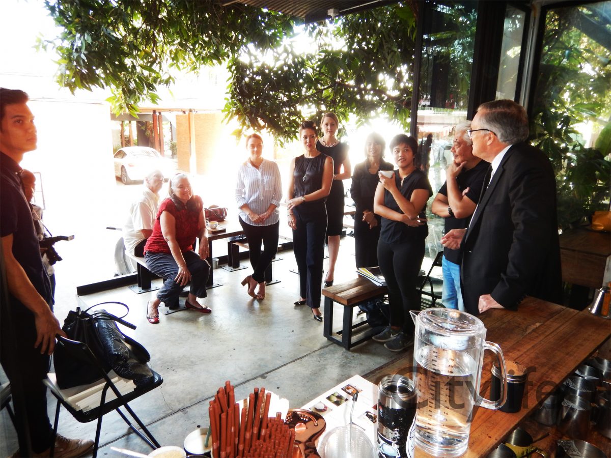 The Australian Ambassador HE Paul Robilliard has host at a special talk on ‘Australian and Thai Coffee Culture’ at Ristr8to Lab. Guest bartista Emily Oak from Australia joined Aron Thitiprasert, owner of Ristr8to to talk about coffee culture and demonstrate latte art to the Thai Australian Alumni in Chiang Mai