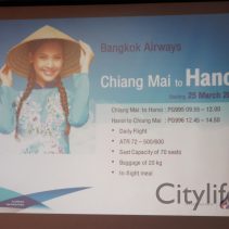 Bangkok Airways held a press conference at the Anantara Resort to announce their new service Chiang Mai to Hanoi starting on 25 March 2018. This new route will be every day; Chiang Mai – Hanoi PG995 Departs 09.55 Arrives 12.00 Hanoi – Chiang Mai PG996 Departs 12.45 Arrives 14.50 Special Promotion Round Trip 7250THB (All Inclusive) The aircraft is a ATR 72 – 500/600, seat capacity 70 / Baggage allowance 20kgs / In-flight meal For Bookings check out http://www.bangkokair.com