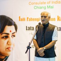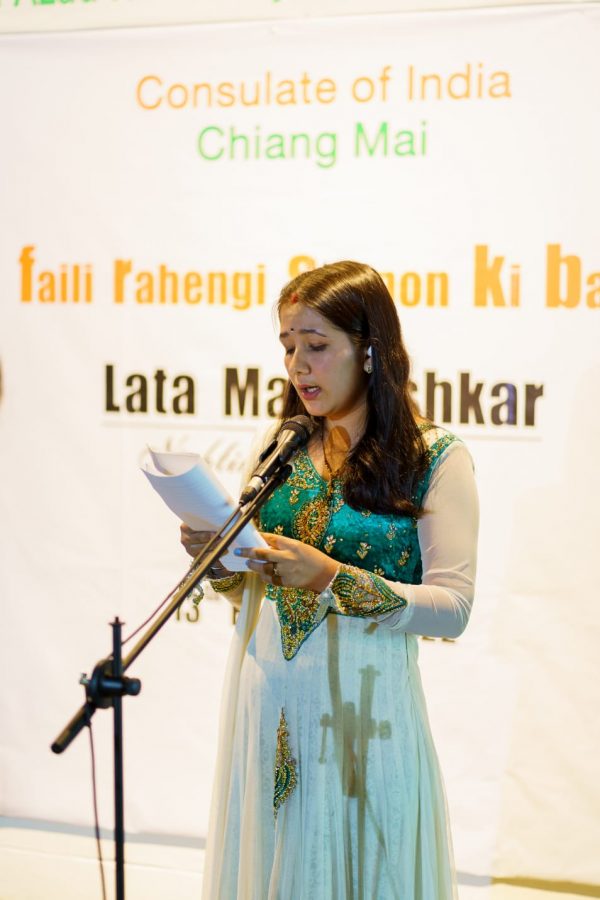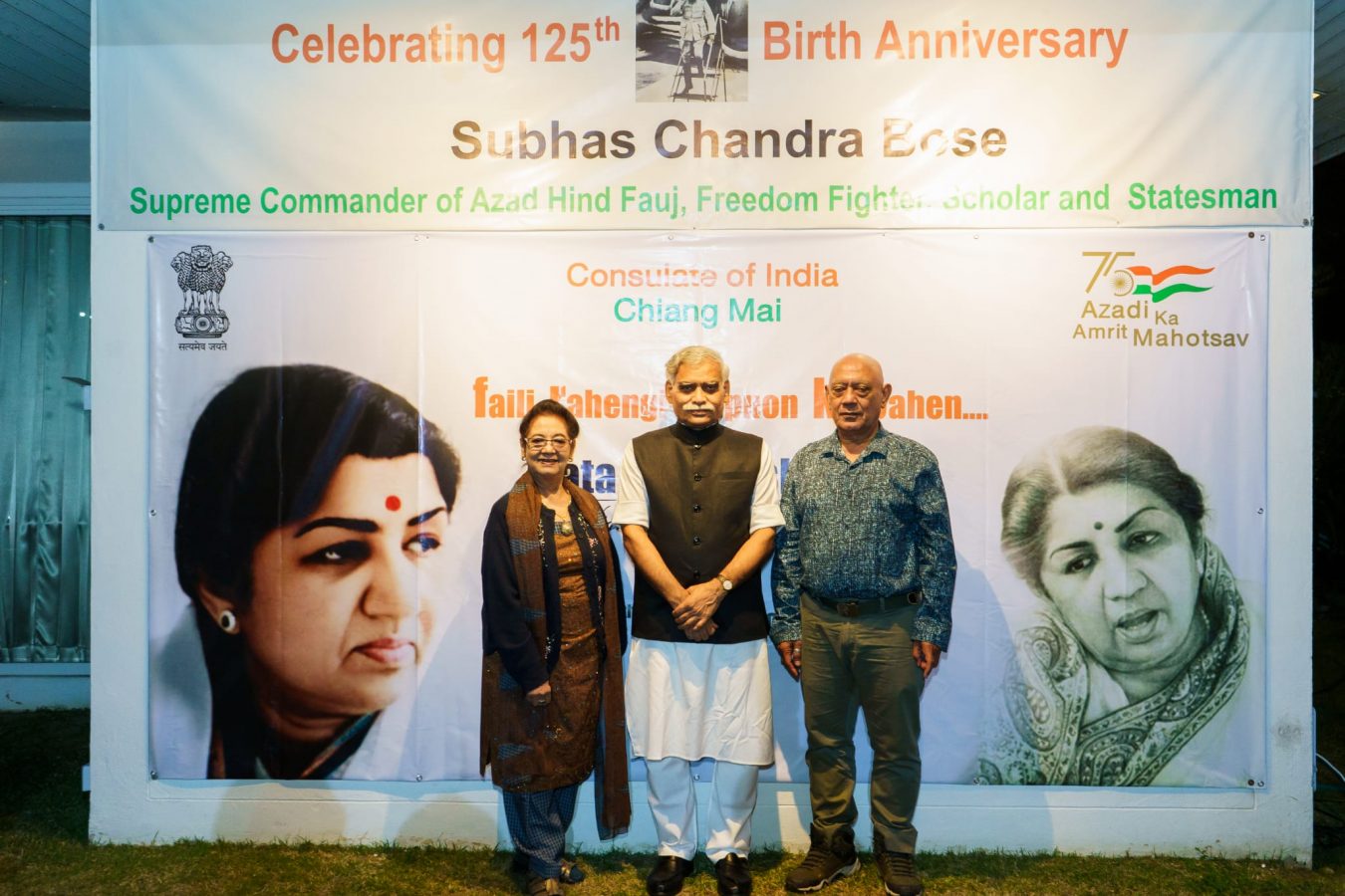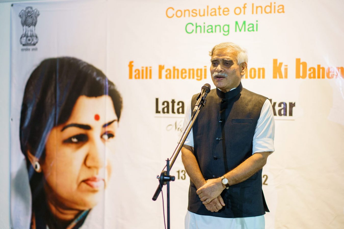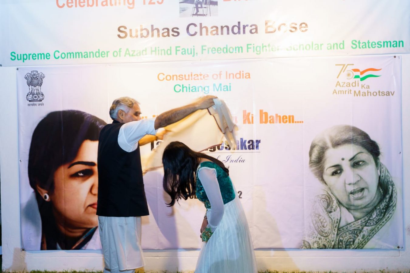 Consulate of India in Chiang Mai celebrated the life and music of ‘Bharat Ratna’ Lata Mangeshkar by holding an event ‘faili rahengi sapnon ki bahen…’. Consul Krishna Chaitanya paid glowing tributes to the singer who passed away on Feb 06 at the age of 92 by saying that with her singing she gave voice to the aspirations, dreams, imaginations and emotions of an emergent nations post-independence. Sangeeta, a new discovery, was a sensation with rendition of two of her famous songs. Shyam Arora presented a specially curated visual presentation including a life sketch of the singer, her famous interviews, and clips of her selected songs. Chai N Thai put up a photo exhibition on the singer who is regarded as “The Nightingale of India”. Earlier the Consulate had its National Flag fly at half mast as India observed two day (06-07) state mourning.