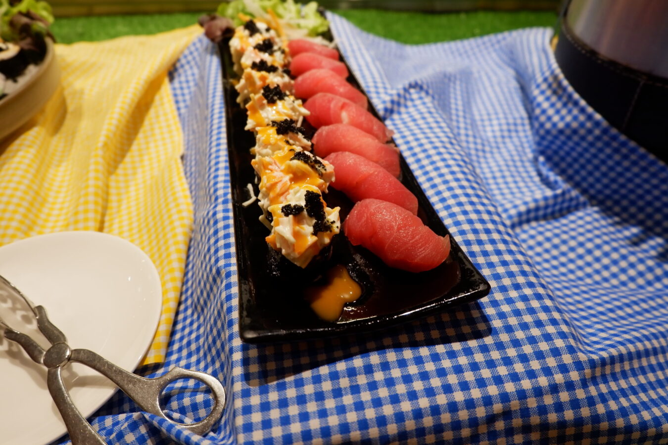 Special every Friday night, enjoy a spectacular seafood buffet including river prawns, squid, blue crabs, mussels, sushi, sashimi, sea bass, lobster soup, along with grilled dishes and German pork knuckle, crispy on the outside, soft on the inside.