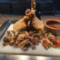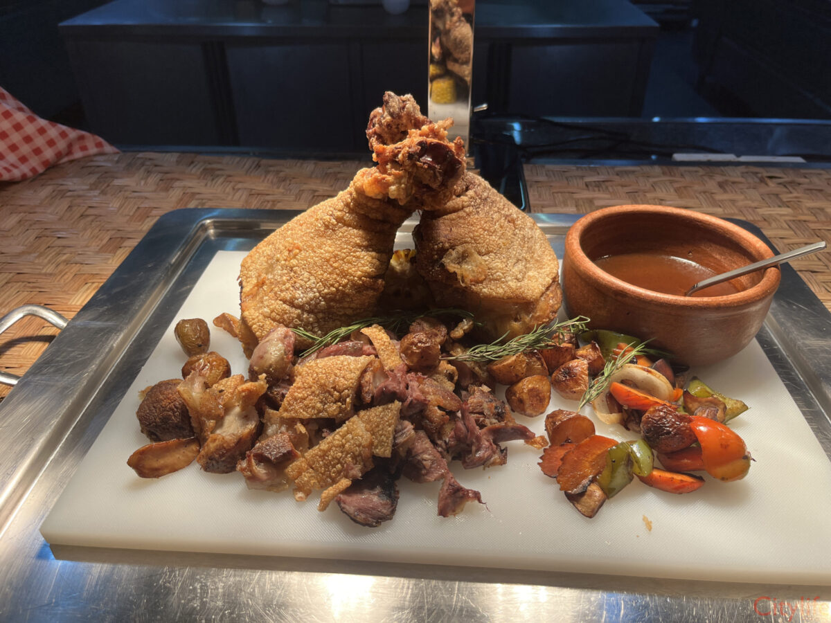 Special every Friday night, enjoy a spectacular seafood buffet including river prawns, squid, blue crabs, mussels, sushi, sashimi, sea bass, lobster soup, along with grilled dishes and German pork knuckle, crispy on the outside, soft on the inside.