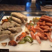 Classic Bavarian dishes like German sausages, potato salad, sauerkraut and freshly baked pretzels.