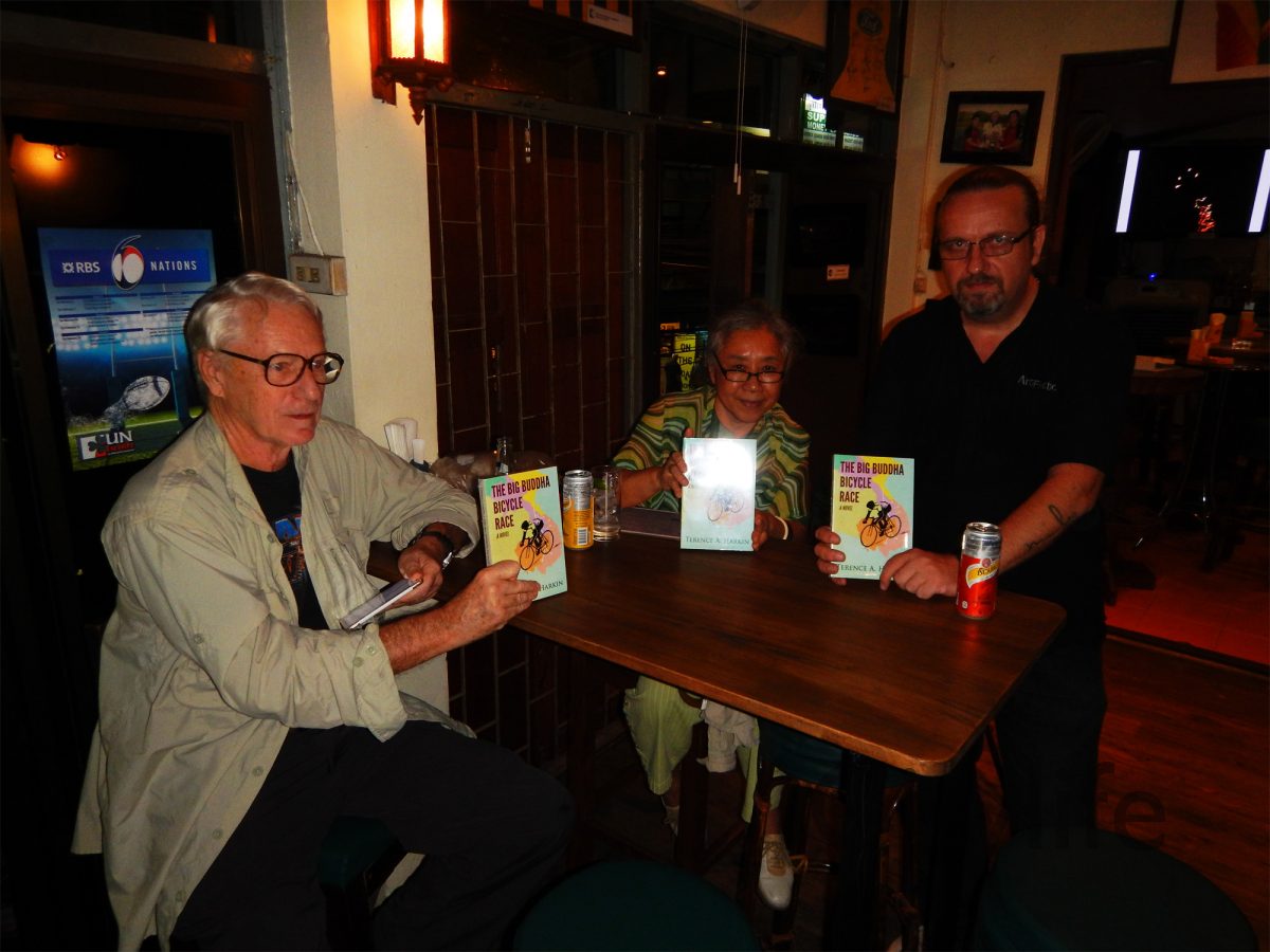 Terence A. Harkin held a talk about his book ‘The Big Buddha Bicycle Race’ at the UN Irish Pub. The talk was a double celebration!. It was one year ago that Silkworm Books released the Asian edition of The Big Buddha Bicycle Race, which went on to become a Top Ten Vietnam War book at Goodreads.com and a nominee for the 2017 Kirkus Prize in literature. And now Swallow Press, the fiction imprint of Ohio University Press, will be releasing the American-UK edition on March 1. The book is set in upcountry Thailand and war-ravaged Laos late in the Vietnam War. On one level it’s a cross-cultural wartime love story. That means exploring Asian-American cultural misunderstanding on the personal level, which can be painful, and on the large scale, where it proved to be catastrophic, especially for the people of Laos, which was devastated by the war and then forgotten. It’s also a surreal remembrance of two groups who have been erased from American history—the active-duty soldiers who risked prison by taking part in the GI anti-war movement and the air commandos who risked death night after night flying over the Ho Chi Minh Trail. In The Big Buddha Bicycle Race, the twain meet. Terry earned a BA in English Lit from Brown University in the late Sixties while drumming with bands that opened for The Yardbirds, the Critters, and Jimi Hendrix. His award-winning play, Resurrection, was produced during his senior year. In the US Air Force, despite writing for GI underground newspapers stateside, he was asked to write the 1971 History of Detachment 3, 601st Photo Flight while stationed at Ubon RTAFB, Thailand. He won a CBS Fellowship for his screenwriting while completing an MFA at the University of Southern California and went on to spend twenty-five years as a Hollywood cameraman. His credits include The Goodbye Girl, The Legend of Billie Jean, Quincy, Designing Women, Seinfeld, and Tracy Ullman. Working on MASH and From Here to Eternity had a powerful effect on the writing of Big Buddha and its sequel, The Bronze Begging Bowl. He is currently living in Chiang Mai and working on Tinseltown Two-step, the final volume of the trilogy. The Silkworm Books online store carries the print edition: silkwormbooks.com Worldwide, The Big Buddha Bicycle Race is available at Amazon.com