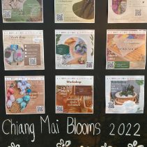 Opening day of Chiang Mai Blooms 2022 at Jing Jai Weekend Market, Saturday and Sunday; 5 / 6 March 2022. Open from 6.30am until 1pm with workshops from 10am until 1pm. Chiang Mai Blooms ‘Blooms to be Reborn’.