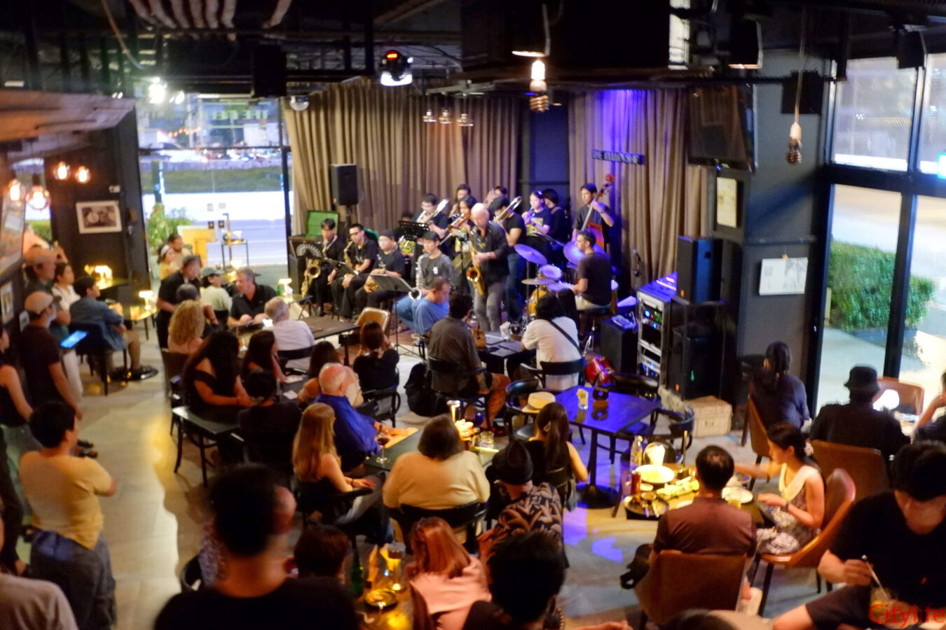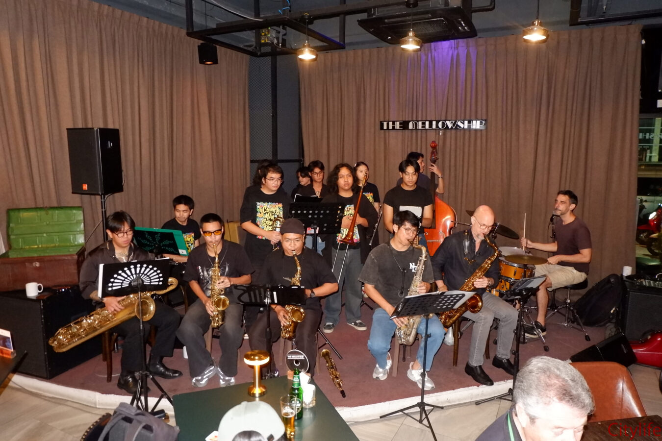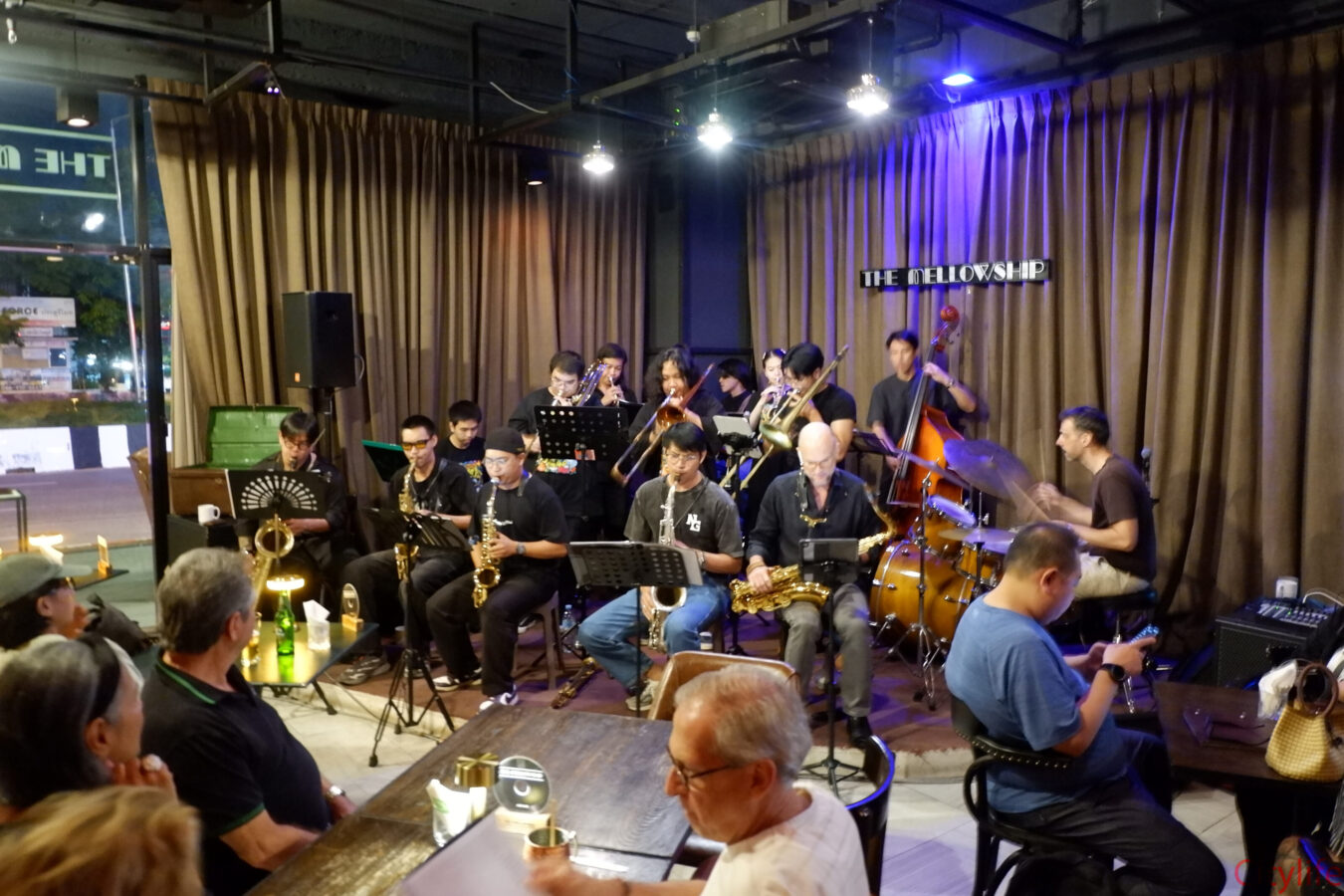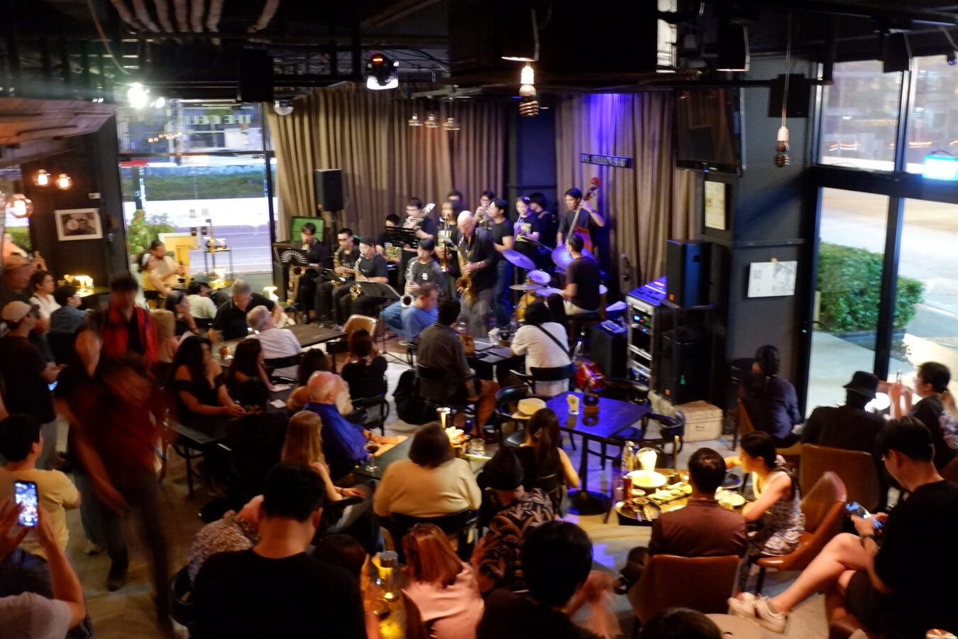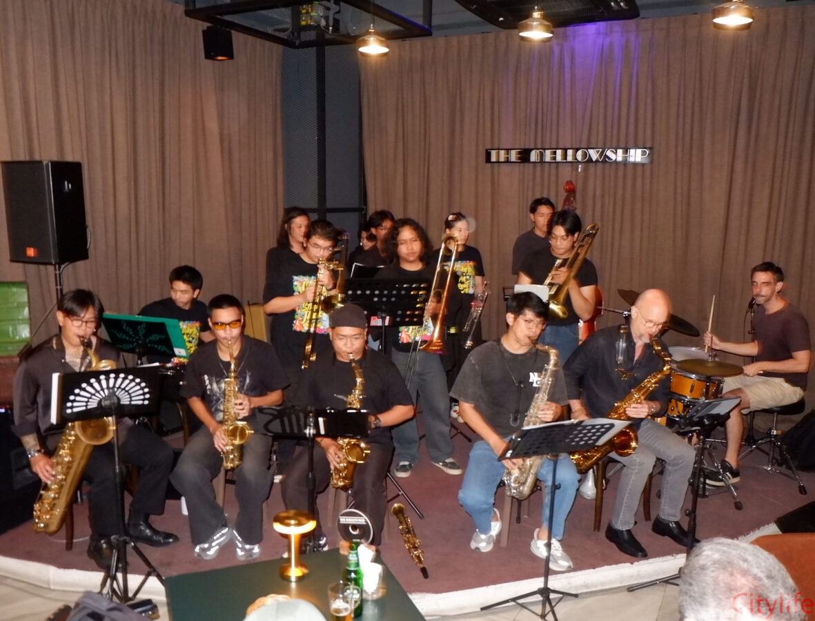 Standing room only for the Chiang Mai Street Jazz Big Band at The Mellowship Jazz Club & Café.
