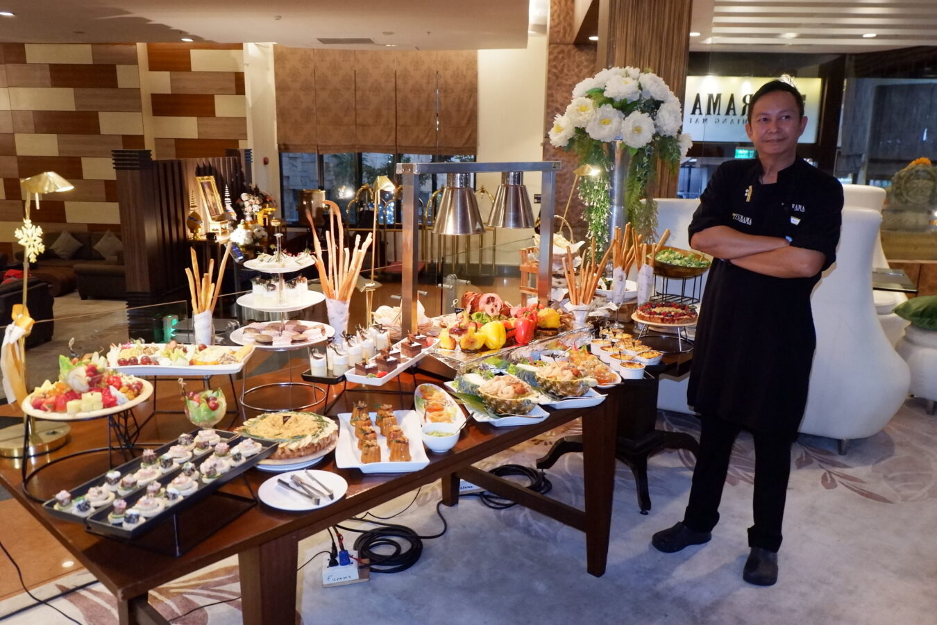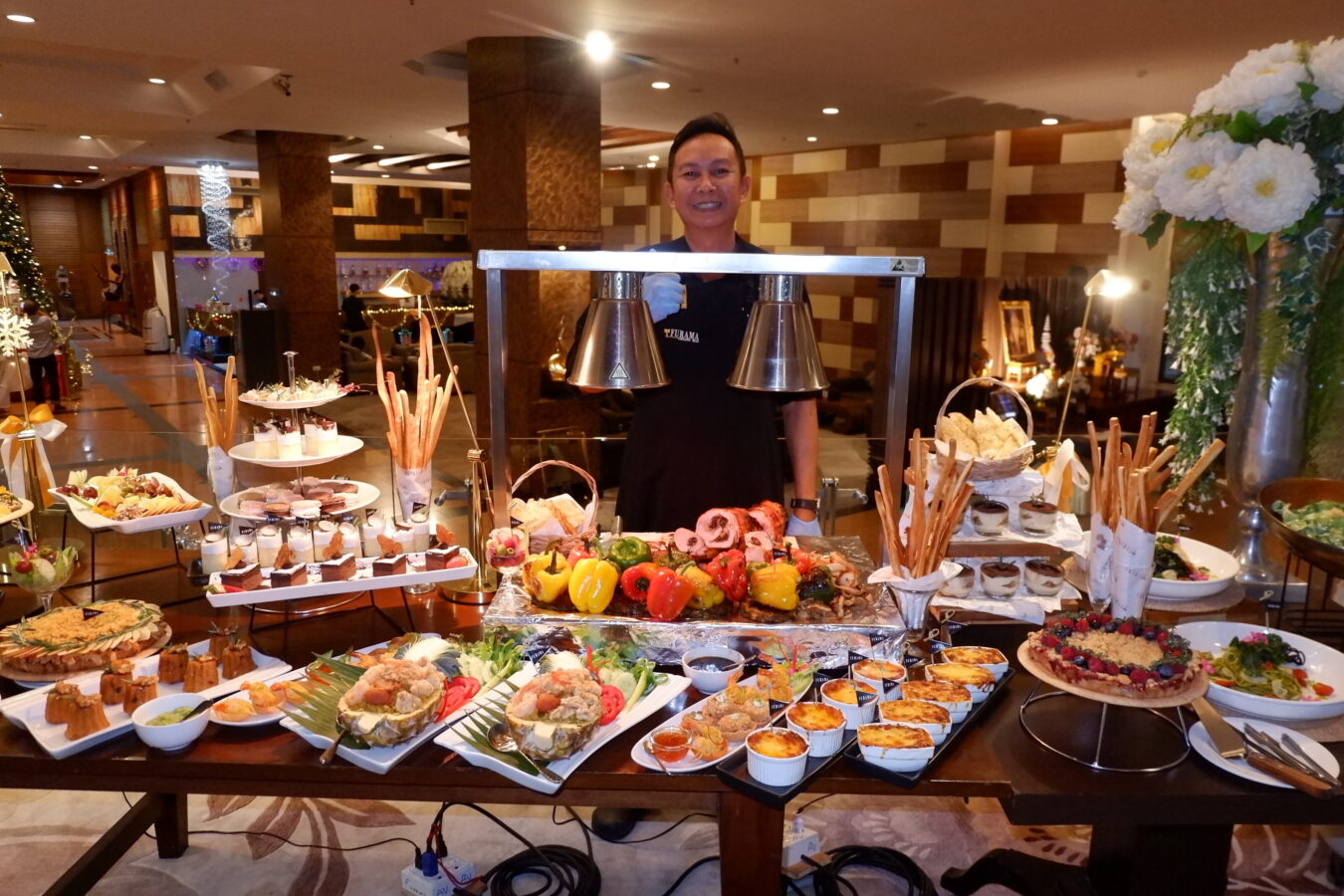 The management team took the opportunity to explain the New Years Eve event on the roof of the Furama Hotel, whilst the chef showed his skills at samples of the buffet that will be available on New Years Eve:
