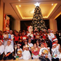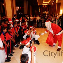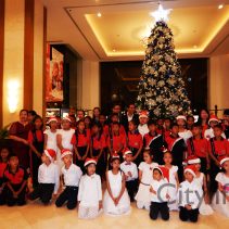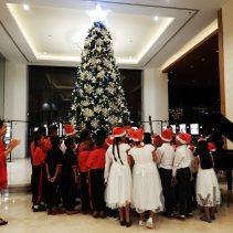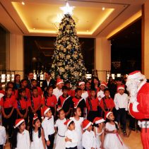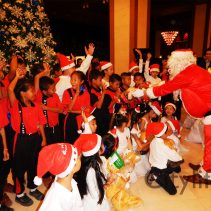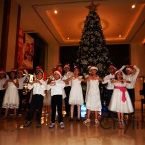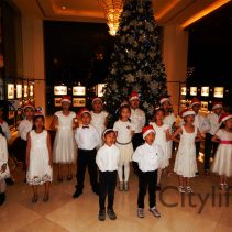 Carol singing and Father Christmas at the Christmas Tree Lighting Party at Shangri La Hotel