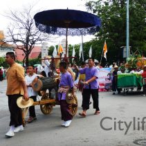 A procession from Three Kings Monument to Wat Chedi Luang to mark the beginning of Inthakin City Pillar Festival; which lasts until 28 May 2017.