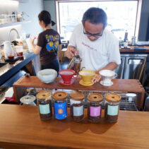 Citylife team were invited to review the recently opened Gallery Drip Coffee at Jing Jai Market. Open weekday 9am to 5pm / weekends 8am to 4pm. Gallery Drip Coffee also have a branch at Three kings Monument at the Historical Culture Centre. Examples from the menu: Coffee with milk 80 THB hot or iced Coffee Ginger Latte 80 THB or iced Drip coffee Mocha 70 THB hot or iced Assorted fruit tea 80 THB hot or iced Plum soda 60 THB iced Thai tea with lime 60 THB iced Plus much more besides For more info call 081-917-2131 or https://www.facebook.com/GalleryDripCoffee?