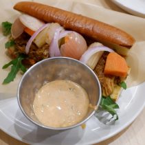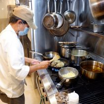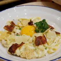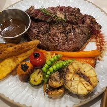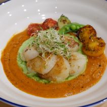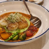Dinner is available from 5pm until 10pm. Examples from the menu include: Tomato seafood chowder (scallops, blue mussels, cod and prawns) 285 baht, prawn bisque at 180 baht, an Australian Wagyu beef stew at 290 baht, a hearty vegetable Stew for 150 baht, the seafood risotto for 270 baht, pan seared US scallops with roasted bell pepper sauce and pea puree 355 baht. Grilled seabass with Romesco sauce & mix grilled vegetables 285 baht. Crab linguini aglio olio 270 baht. Beef ragu pappardella pasta at 250 baht and much much more. Delicious.