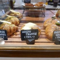 Premium French croissants (by Sarudq’s Chef View) include plain croissant at 85 baht, exotic croissants (mango, passion fruit and lime) at 129 baht, ham cheese & béchamel croissant for 159 baht Yuzu & honey meringue croissant at 145 baht, pain au chocolat for 95 baht, milky way croissants for 135 Anant, almond croissants for 135 baht, Bostoc for 95 Baht and the piece de resistance, Wagyu truffle croissants for only 190 baht.