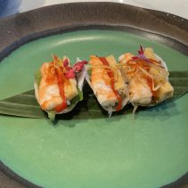 Chilled prawn salad in sesame rice paper wraps 350 THB