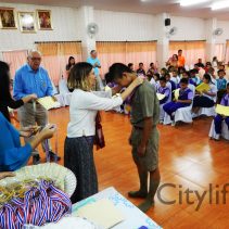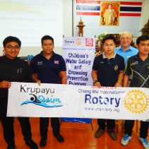 Chiang Mai International Rotary Club (CMIRC) Children’s Water Safety and Drowning Prevention Certificate Ceremony at Wat Sri Don Chai Municipal School. 168 students from 5 schools received certificates and a medal as part of the Children’s Water Safety and Drowning Prevention Program