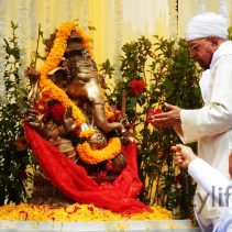 Consecrating the Ganesha at Star Avenue 5, on the