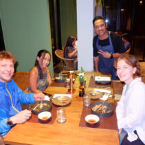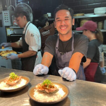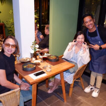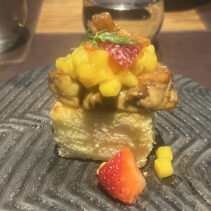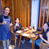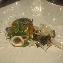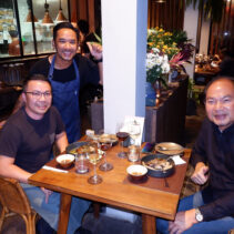Menu included: Prawn Crudo (raw prawn infused in spicy and sour mint pineapple and fish sauce) / Oyster O-Tao (deep fried oyster with grilled pork and O-Tao sauce) / Foie Gras Kapi Waan (pan seared foie gras with mango and sweeten shrimp paste) / Grilled Squid Koong Sieb (grilled giant Andaman squid with dried shrimp relish)/ Grilled Moo Hong and rice (double cooked pork rib shino Portuguese style sered with garlic dry boiled rice) / Ar-Pong & Mo Kaeng (Phuket style pancake and curry cake with salted caramel ice cream)