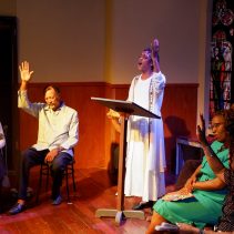 Dress Reheasal of The Amen Corner by the Gate Theater Group at Kad Studio Theater… December 20 – 23 The Gate Theater Group presents The Amen Corner by James Baldwin. December 20, 21, 22 at 7:00pm, December 23 at 2:00 pm. Kad Studio Theater, 7th floor, Kad Suan Kaew. Tickets from 300thb – 400thb. Tickets available at the door, or online through the website at www.gate-theater.com This gripping drama addresses themes of religion, love, and poverty. Author, James Baldwin takes us on a journey into the complex relationships forged by religion and love. From her first sermon, Margaret’s faith is obviously centered more on judgment than mercy. She has centered her life around the pastorship of a small church in Harlem. When she declares movies, drinking, jazz, and even comic strips in the daily papers as morally unacceptable, her narrow, brittle barricades leave little space left for those around her to breathe. During the course of the play, we learn of the deep-set loss and fear that drives her to first take refuge in a set of scriptures, and then build a dictatorship that pushes people away. Will the hypocrites wind up in charge of the church? In a sense, the question is beside the point. In Baldwin’s tragedy, the spiritual leader’s fall is all but preordained. Why? Long ago, the very heart of faith and love was replaced by something else. As Sister Margaret struggles to preserve the stability she’s built, her faith is tested to the point of excruciation. Until saying “amen,” which means “so be it,” becomes harder and harder for her to do. https://www.facebook.com/TheGateTheater/