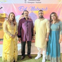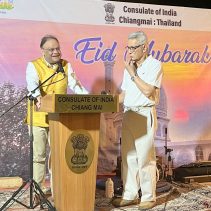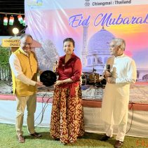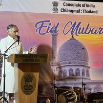 It was a huge turnout at the Eid-ul-Fitr celebration hosted by Consulate of India in Chiang Mai. Wishing the distinguished gathering ‘Eid Mubarak’, Ambassador of India H.E. Nagesh Singh stated that India has the second largest Muslim population after Indonesia, and added that Islam came to India at the time of the Prophet himself and became part of India’s syncretic culture which is truly a mosaic of many religions and traditions. He pointed out that the Cheraman Juma Mosque in Methala, Kodungallur, Thrissur in the Indian state of Kerala was established during the time of The Prophet in 629 CE, which makes it the oldest mosque in the Indian subcontinent. Ambassador Singh alluded to the many strides being made in the diversified relationship between Thailand and India and added that he fell in love with Chiang Mai during his first visit in January, and would like to come again and again to the city. Earlier, welcoming the guests, and warmly greeting them ‘Eid Mubarak’, Consul Krishna Chaitanya recalled that a group of Hindu Brahmins had gone to Karbala to fight on the side of Imam Hussain. All of them died except one and he brought a shred of Prophet Mohammed’s hair which is preserved in the holy Hazratbal mosque in Shrinagar. Pointing out another connection of Imam Hussain with India, he stated that his wife, the Persian princess Shahrbanu is believed to be a sister of Mihrbanu, the wife of India’s king Chandragupta Maurya.