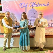 Ambassador Nagesh Singh also presented Overseas Citizenship of India (OCI) to Thailand’s acclaimed artist Navin Rawanchaikul; and to India Alumni Anan Sriprommarak and Arisa Sriprommarak; and their mother Ms M K Aadama. The OCI enables the people of Indian origin to travel visa free to; and to live, work (except in government jobs), do business, and own property in India and be treated like Indian Nationals. Rains, though much needed in the city, played spoilsport with the event, but could not prevent gifted singers Vijay, Arisa, and Chitra assisted by instrumentalists Sarawut Chaysingkhum, Sarayut Kanrueang, and Ashok Rajpal from presenting a medley of Sufi songs. Chai N Thai provided the catering with variety of traditional Eid delicacies from different parts of India.