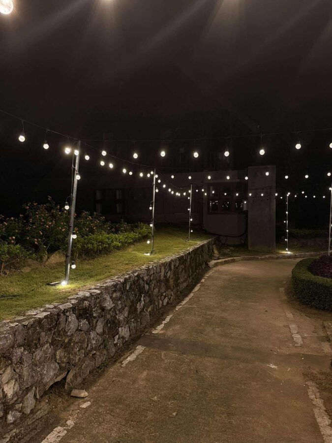 Instagrammable Spots Flower Garden at The Nostalgia Krisda Doi / The Archway entrance leading to the Buddha Pavilion trail / Stream and Fountain Garden at Krisda Doi area / Outdoor Movie Lawn under the night mist / Front Garden near the Green House Spa, adorned with romantic lights