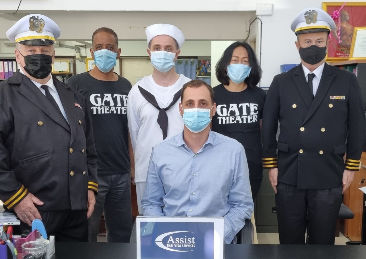 A few Cast members from The Caine Mutiny Court-Martial made an appearance at the office of Assist Thai Visa this week to mark another season of its sponsorship for The Gate Theater, Chiang Mai’s first English language Theater. Stephan Turner, Artistic Director told Citylife “This will be the 15th season for The Gate Theater in Chiang Mai. Thank You Rhys Bonney for your continued support of English language Theater in Chiang Mai!”.
