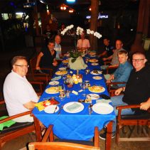 Glenn’s Welcome Back Dinner at The Garden Bar, Lotus Hotel. The Garden Bar offers Lebanese, Western and Thai cuisine. The most popular dishes are Mezze Platter, Kafta in the Oven, Chicken ala Kiev and Hummus. The extensive menu offers a lot more besides! – available to eat in, takeaway and home delivery – for reservations call 053-215-376 or 053-215-462 – for further details check out http://lotus-hotel.com/restaurant-2/