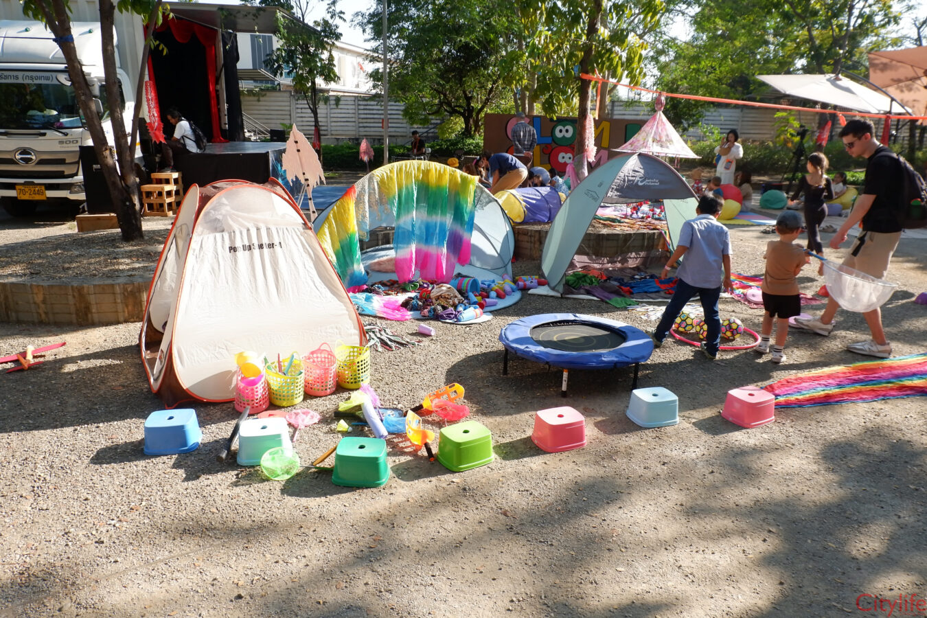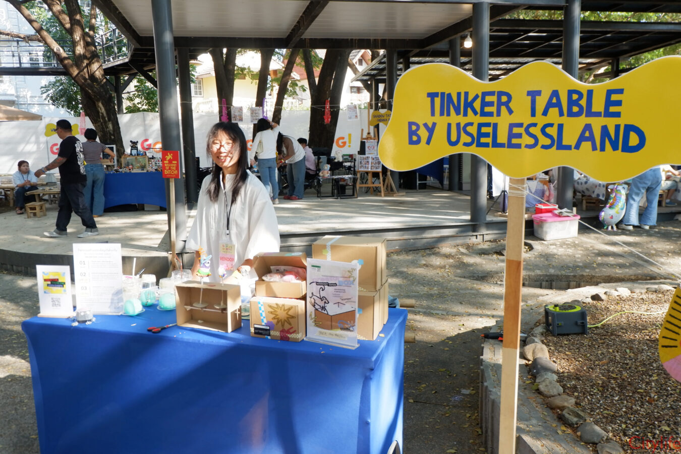 Glom Glom 2026 at VP City Park Chiang Mai – We’re BACK for our 4th year — and at a brand new venue! Step into Tinker Town, where creativity, curiosity, and happy accidents are all part of the fun!. Meet Endoo, the wonderfully weird inventor, and join his wild showdown with the mischievous Professor Preposterous in an interactive musical adventure you won’t forget. Spend the day building, crafting, experimenting, and exploring with: art stations / tinkering workshops / roaming performers / giant toy installations … and magical surprises everywhere!
