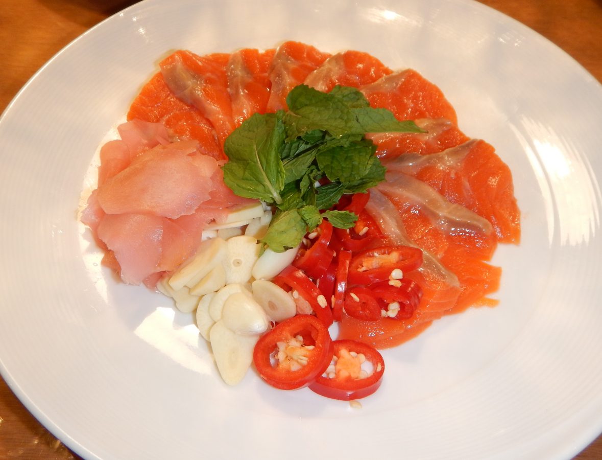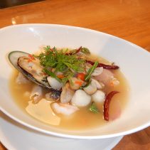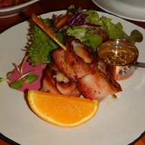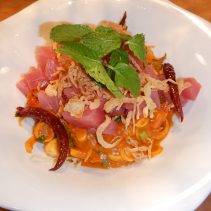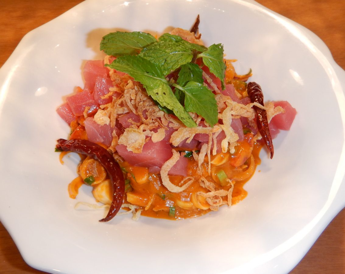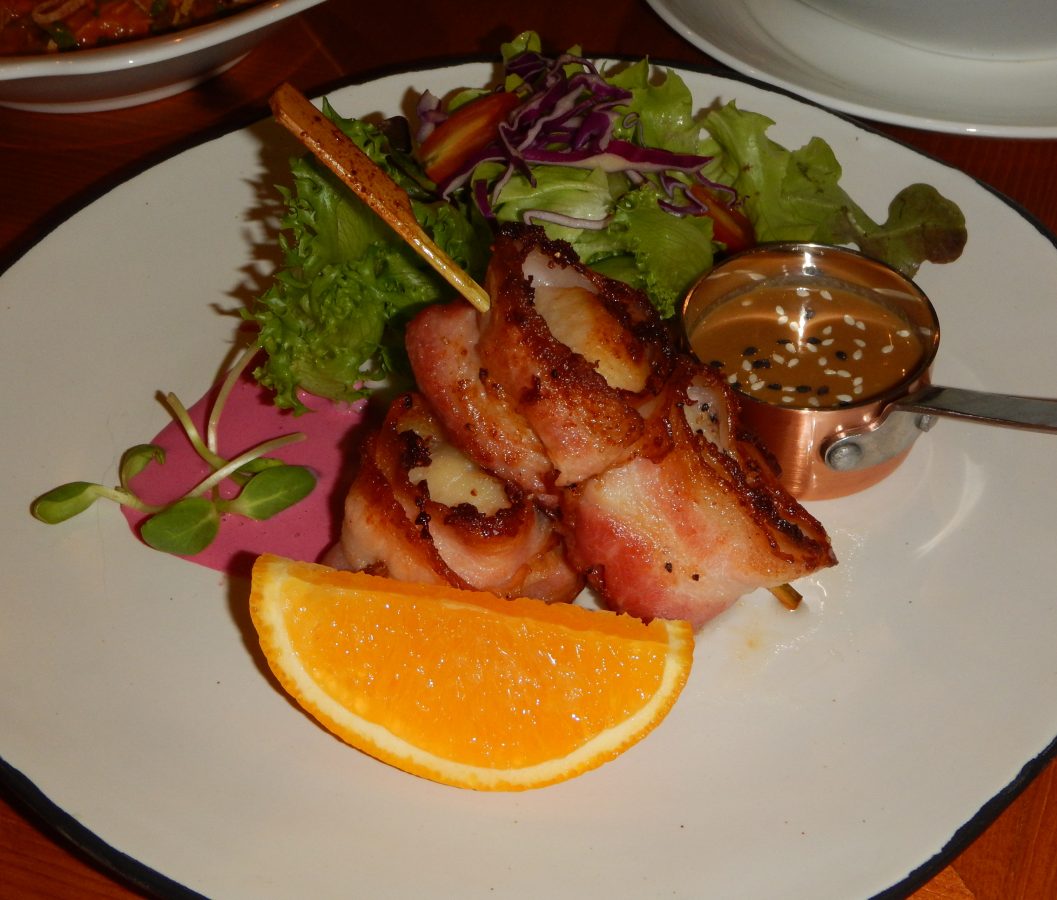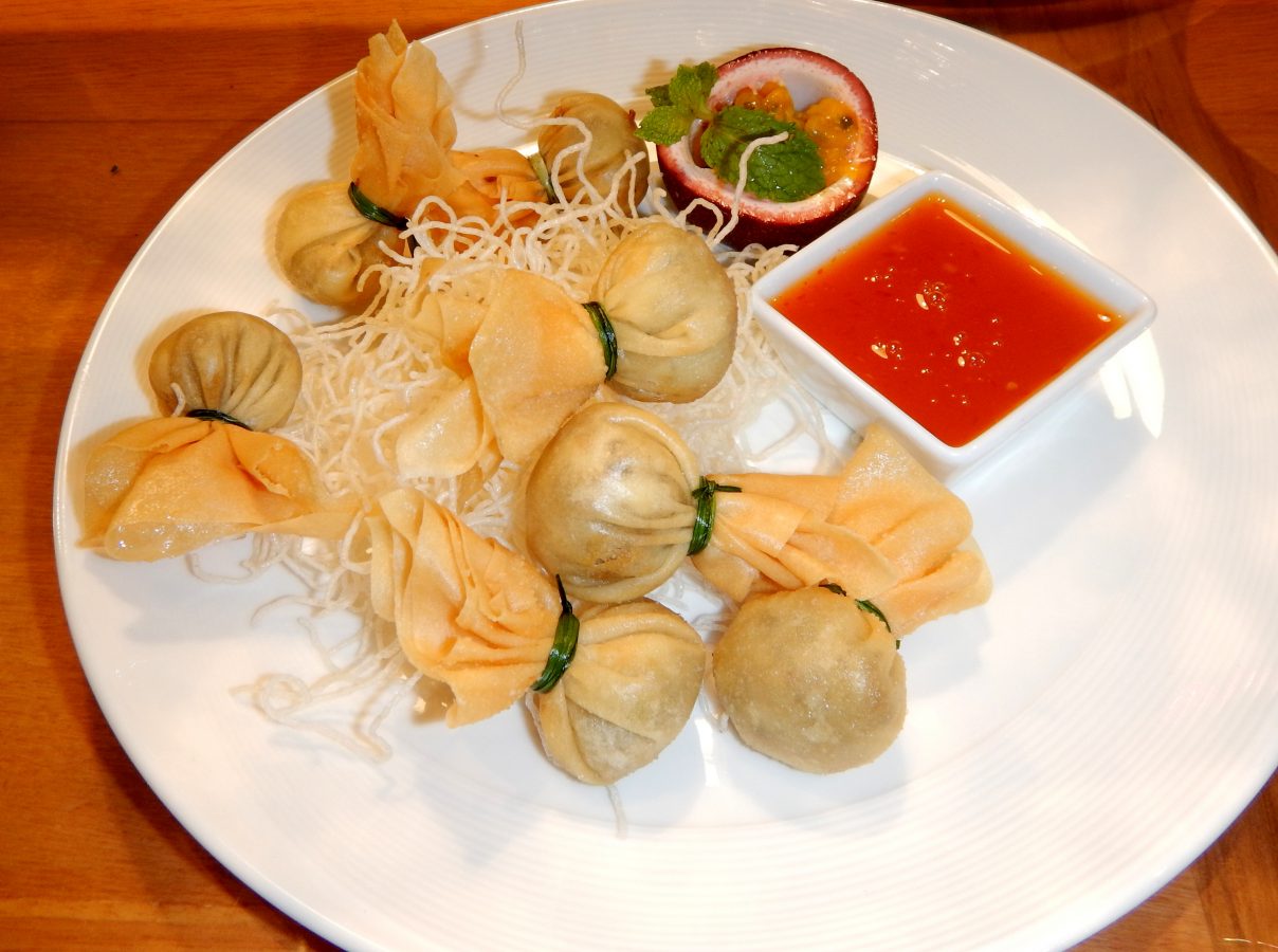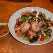 Breakfasts include Egg Benedict with Waffle 120thb / Fried Eggs served with sausages & Deep Fried Pork 120thb / Boiled Rice with Snapper 95thb. Western Main Courses include Spaghetti with ham & cheese 120thb / Baked New Zealand Mussels with Cheese 220thb /BBQ Ribs 350thb / Steak with Pepper Sauce (imported Beef) 350thb / Spaghetti Cream Salmon 210thb / Sausage Medley 240thb. Thai dishes include Deep Fried Pork Knuckle 240thb / Thai Fish Cakes 175thb / Deep Fried Sun-Dried Beef 175thb / Deep Fried Prawn Crepes 155thb / Deep Fried Turmeric Chicken Wings 120thb / Stir Fried Clams with Chili Paste 180thb ALL PRICES INCLUDE V.A.T.