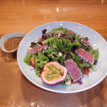 Breakfasts include Egg Benedict with Waffle 120thb / Fried Eggs served with sausages & Deep Fried Pork 120thb / Boiled Rice with Snapper 95thb. Western Main Courses include Spaghetti with ham & cheese 120thb / Baked New Zealand Mussels with Cheese 220thb /BBQ Ribs 350thb / Steak with Pepper Sauce (imported Beef) 350thb / Spaghetti Cream Salmon 210thb / Sausage Medley 240thb. Thai dishes include Deep Fried Pork Knuckle 240thb / Thai Fish Cakes 175thb / Deep Fried Sun-Dried Beef 175thb / Deep Fried Prawn Crepes 155thb / Deep Fried Turmeric Chicken Wings 120thb / Stir Fried Clams with Chili Paste 180thb ALL PRICES INCLUDE V.A.T.