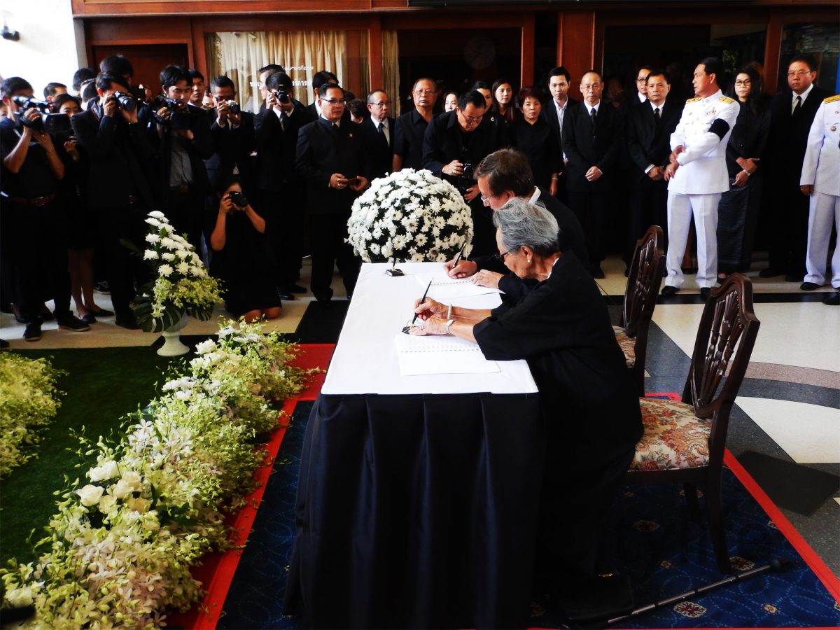 The Governor of Chiang Mai Pawin Chamniprasart, local government officials and dignitaries gathered this morning at the Provincial Hall to sign the Book of Condolences for H.M. The King