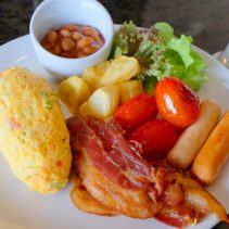 Your Choice of Eggs, served with bacon, baked beans, baked potato, chicken sausage, pork sausage, grilled tomato and sautéed mushroom (fried egg, scrambled egg, poached egg, boiled egg, omelette) // Eggs Benedict with ham/salmon and hollandaise sauce // Pancakes served with berry compote, maple syrup or honey // Waffle served with berry compote, maple syrup or honey // Egg pizza with parma ham and assorted lettuce // Pan baked spicy egg with vegetable, masala spice and yogurt // Khao Tom Kung (boiled rice with shrimp) // Joke Kai / Moo (congee with your choice of chicken or pork) // Kiew Nam ( shrimp and pork wonton in clear soup) // Khao Pad Kai / Moo / Talay (fried rice with your choice of chicken, pork or seafood)… Much more besides……