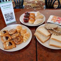Unlimited prepared food especially for customers, also included in the price: fresh brewed coffee (Americano / Cappuccino / Café Latte etc etc), or a selection of fine tea (English breakfast / Jasmine Green Tea / Earl Grey etc etc).