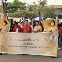 The parade of Holy Water from Three Kings Monument to the ceremony at Wat Phra Singh