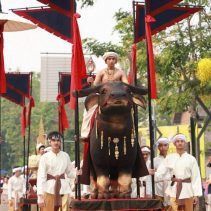 The parade of Holy Water from Three Kings Monument to the ceremony at Wat Phra Singh