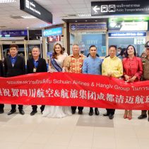 Inaugural Flight 3U 3933 Sichuan Airlines from Chengdu Airport (China) to Chiang Mai Airport (Thailand) operated by Sichuan Global Travel International Travel Service. Guo Hui, President and his team at Sichuan Global Travel International Travel Service joined the first flight.